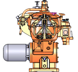 Principle of work The CGL series splitter mainly by the rotor drum, vertical shaft, the shaft level, the rack, measured the fast installment, thebrake system, the control valve, the oil pump and the electric motorand so on compose. Separation of materials into question within the drum disc separation zone separation, the use of materials oil, water, the residue of different densities in different centrifugal force was the centrifugal force which is separated from the oil off by the heart to pump output, the proportion of water from the Central mouth thrown off, exports from the sewage discharges, the question Deslagging impurities from the drum Deslagging I ruled out.
